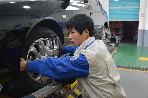 早上8:30分,準(zhǔn)時開賽,選手們個個精神抖擻上陣,準(zhǔn)備一展身手。只見他們熟練展開四輪輪胎磨損情況、四輪動平衡及鋼圈輪胎變形情況檢查等一系列操作。臺上選手們比技能,臺下其他修理工饒有興致地觀摩學(xué)習(xí)。