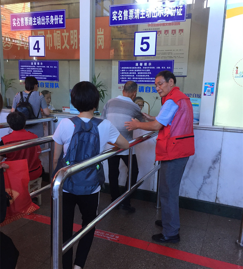 為了更好的推進(jìn)創(chuàng)全國(guó)文明城市的工作,加大對(duì)不文明現(xiàn)象的勸導(dǎo),從7月17日開(kāi)始,老年大學(xué)的“紅馬夾”志愿者開(kāi)始在東站志愿服務(wù),他們將對(duì)在車站內(nèi)發(fā)生的不遵守一米線排隊(duì)秩序、隨地亂扔垃圾、隨地吐痰、躺在座椅上睡覺(jué)等所有不文明現(xiàn)象進(jìn)行勸導(dǎo)。