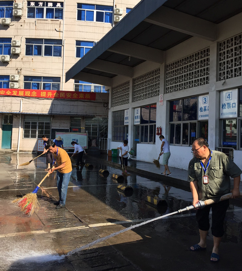 為了迎接24日至26日省專家的文明城市檢查,7月22日下午3時(shí),東站黨員骨干志愿者們頂著41度的高溫,在江小華書記的帶領(lǐng)下,主動(dòng)放棄休息時(shí)間,帶著消防水帶、掃把等工具,對(duì)發(fā)車區(qū)進(jìn)行了徹底的清洗。