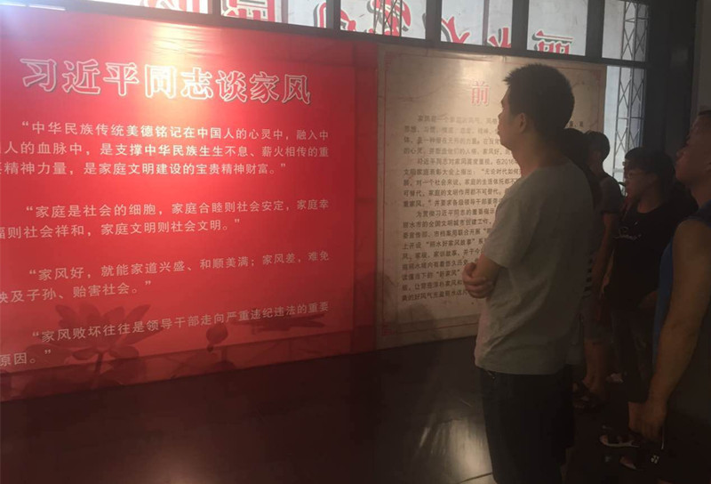 8月12日,東站黨支部組織黨員到市美術(shù)館參觀“麗水好家風(fēng)”展覽。通過(guò)對(duì)《先祖遺風(fēng)》、《傳世家風(fēng)》、《蔚然新風(fēng)》三大板塊的參觀學(xué)習(xí),黨員干部深深感受到古代先賢修身齊家的家國(guó)情懷、革命先輩言傳身教的崇高風(fēng)范、歷史名人恪守傳承的人生境界和普通百姓代代相傳的做人操守,深刻認(rèn)識(shí)到黨員干部的家風(fēng)連著黨風(fēng)、政風(fēng),是黨的優(yōu)良作風(fēng)在家庭層面的延伸和體現(xiàn)。