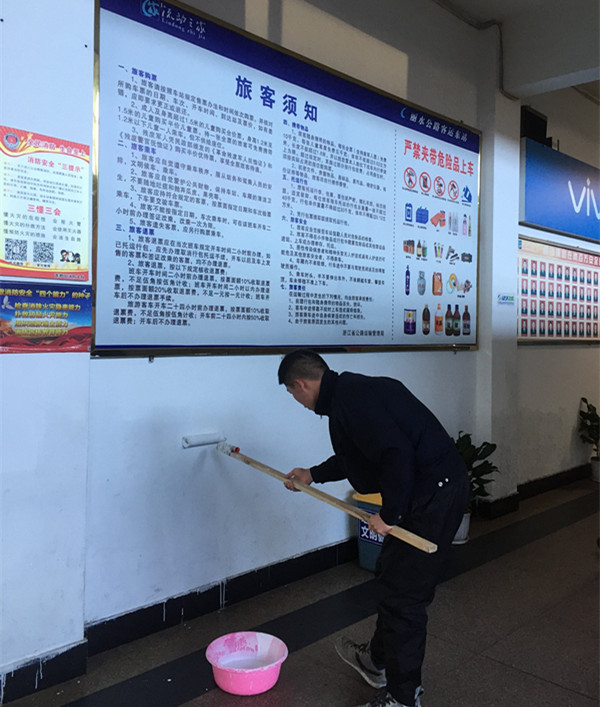 春節(jié)的腳步越來越近,為了提升站場的整體形象。1月13日下午亮點,東站黨員志愿服務隊的隊員們在支部書記江小華的帶領下對候車廳、過道、辦公室走廊、樓梯口等墻壁進行粉刷。