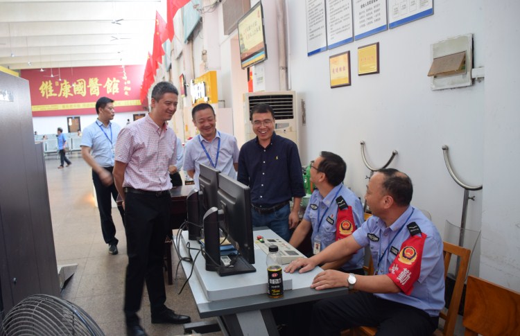 黃偉君先后檢查了東站GPS監(jiān)控中心、候車廳、售票廳等安全生產(chǎn)重要部位,認(rèn)真查看了GPS監(jiān)控中心、消防器材、安檢機(jī)等設(shè)施設(shè)備運(yùn)行情況。在安檢儀前,細(xì)致地查看了旅客行包安檢整個(gè)流程和三品檢查流程;在消防器材旁,認(rèn)真詢問消防器材的站內(nèi)配備情況。黃偉君對(duì)東站所做的安保工作和“營(yíng)造國(guó)慶70周年氛圍”工作表示肯定,并要求東站繼續(xù)把好安保維穩(wěn)和安全生產(chǎn)關(guān),保證“新中國(guó)建國(guó)70周年大慶”安保維穩(wěn)工作和節(jié)日安全生產(chǎn)工作的圓滿完成。