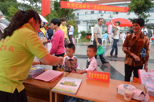 為踐行黨的群眾路線,進(jìn)一步推進(jìn)服務(wù)型黨組織建設(shè),解決服務(wù)群眾“最后一公里”問題,9月20日上午,麗汽集團(tuán)積極組織黨員志愿服務(wù)者參加了由市直機(jī)關(guān)黨工委在市區(qū)燈塔公園舉行的黨員志愿者服務(wù)一條街“市區(qū)聯(lián)動(dòng)走進(jìn)社區(qū)”活動(dòng)。來自麗汽集團(tuán)本部、客運(yùn)西站、旅游集散中心、伊翔和甌龍(甌翔)等單位的12名黨員志愿服務(wù)者為社區(qū)居民提供了國慶黃金周汽車票預(yù)定、黃金周旅游、汽車銷售維修等服務(wù),同時(shí)還開展了微心愿征集活動(dòng)。
