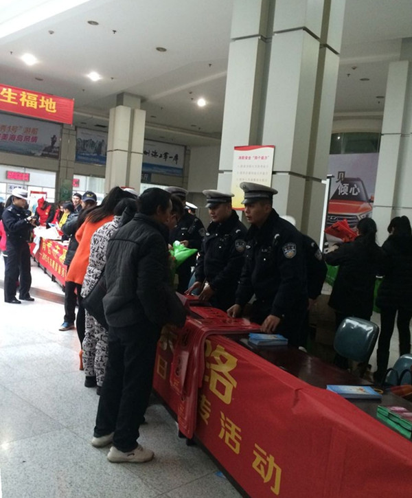 本次活動由麗水市公安局交警支隊、麗水市公路管理局、金麗溫高速、高速交警麗水支隊、麗水市道路運(yùn)輸管理局、麗汽集團(tuán)等單位參加,并在西站現(xiàn)場設(shè)立了春運(yùn)服務(wù)點。活動現(xiàn)場熱鬧異常,咨詢的旅客也絡(luò)繹不絕,活動單位向廣大旅客們發(fā)放了《珍愛生命、安全出行、拒絕黑車》、《文明交通安全宣傳手冊》等交通安全書籍和宣傳冊頁,還為旅客們送上了年味十足的福字、對聯(lián)和使用性強(qiáng)的浙江省高速公路行車指南地圖作為新年小禮物,受到了廣大旅客的歡迎。